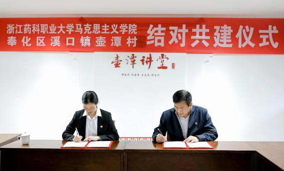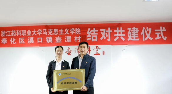 随后,在全体与会人员的共同见证下,卢培苗和周文元分别代表双方签订了《英国正版365官方网站——奉化区溪口镇壶潭村党建共建协议书》,并举行了“浙江省药科职业大学英国正版365官方网站研学实践基地”挂牌仪式。